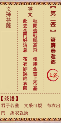签诗:秋闱一战鹏高飞,便捧金书上帝基,此去金门好消息,布衣却换锦衣回。