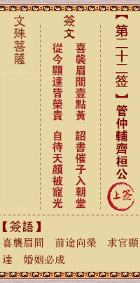 文殊菩萨灵签第22签解签 上签