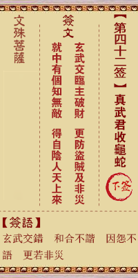 文殊菩萨灵签第42签解签 下签