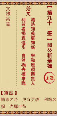 诗文解译:随时知义更知新→在做人上,随时当知道‘义’,更需要随时更新自己。意即,在生活要修行、修德。举动应须遇贵人→若有作为,需要有贵人。利益名扬宜进步→名利俱扬,更宜再进一步。意即,要是获得名利了,那自己更需要提升品德与操守。自然祸去福来临→祸害自然离去,福份自然来临。意即,要是能如此修行、修德,那祸害自然就不来了。