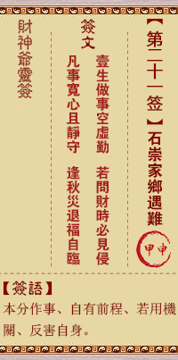 财神灵签第21签解签 财神灵签第二十一签
