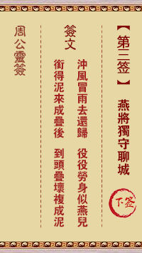 冲风冒雨去还归。役役劳心似燕儿。君尔之运逢燕子衔泥筑巢之象耶。空心徒劳。无益者。为先难后甘之运。唯应小心。本签之总结也。千方百计。晨昏碌碌不停。谁知此事到底无以可成者。修之。悟之。