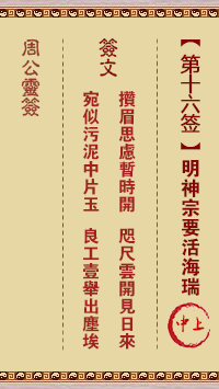 如玉在污泥中之象。如获良玉贵人一举。牵成时。出污泥则。可获吉也。亦即是表明君之今也。咫尺眼前之云拨开即得见日者。时运将到者。曰:得处无伪损中有益顺逆吉凶君子得吉之签。