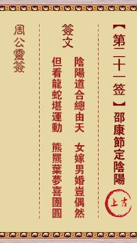 周公灵签第二十一签:邵康节定阴阳 上吉