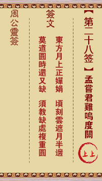 周公灵签第二十八签:孟尝君鸡鸣度关 上上