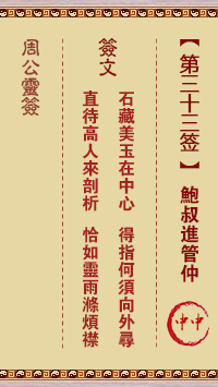 周公灵签第三十三签:鲍叔进管仲 中中