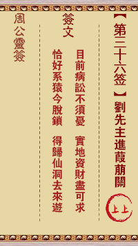 周公灵签第三十六签:刘先主进葭萠关 上上