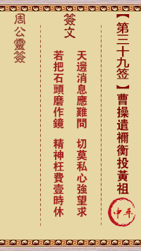 周公灵签第三十九签:曹操遣襧衡投黄祖