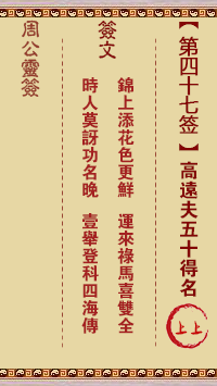 周公灵签第四十七签:高远夫五十得名 上上