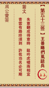 周公灵签第五十三签:王景略扪虱谈兵 上上