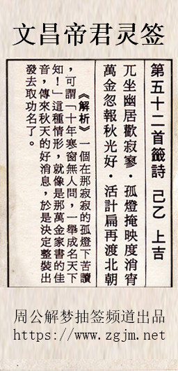 文昌帝君灵签第五十二签:己乙上吉