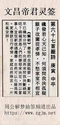 文昌帝君灵签第六十七签:庚庚中平