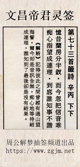 文昌帝君灵签第七十三签:辛丙下下